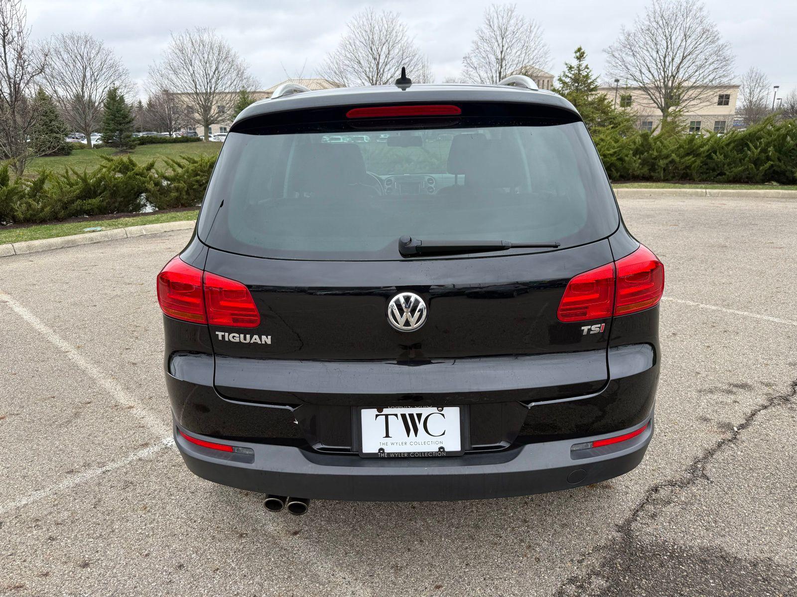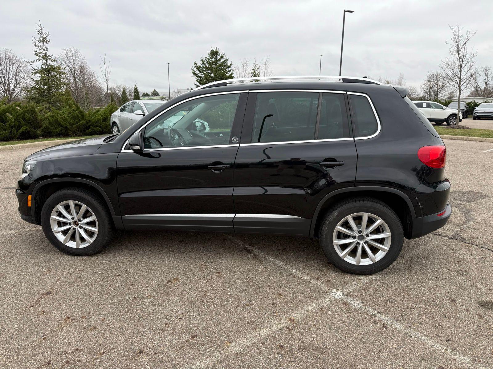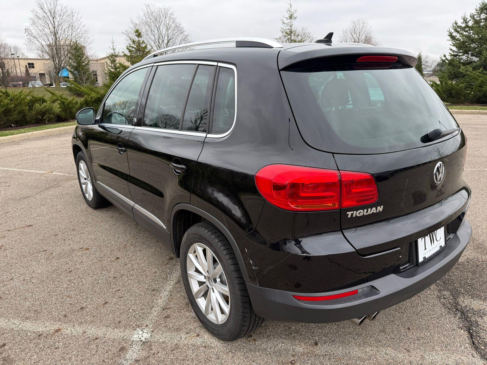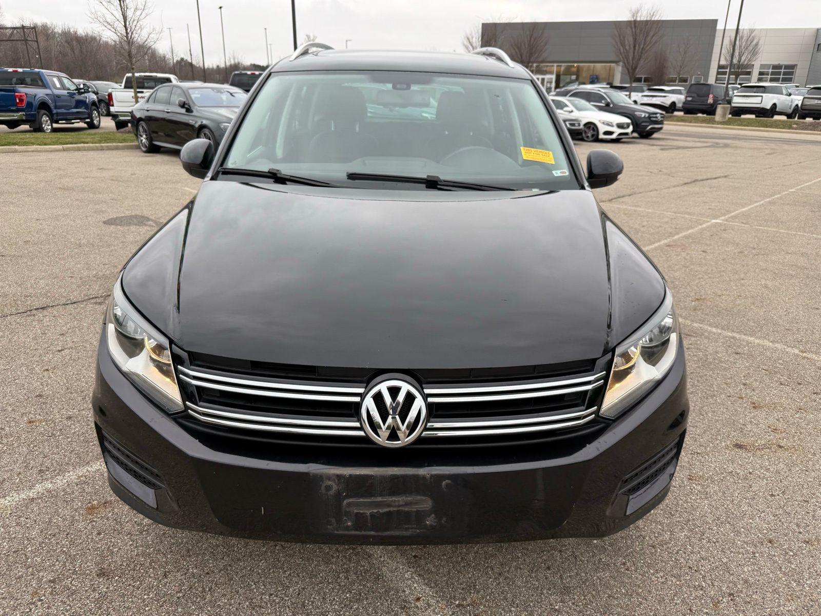 Deep Black Pearl 2017 Volkswagen Tiguan 2.0T Wolfsburg Edition FWD 6-Speed Automatic with Tiptronic 2.0L TSI DOHC3.45 Axle Ratio, 4-Wheel Disc Brakes, 8 Speakers, ABS brakes, Air Conditioning, Alloy wheels, AM/FM radio: SiriusXM, Auto-dimming Rear-View mirror, Brake assist, Bumpers: body-color, CD player, Compass, Driver door bin, Driver vanity mirror, Dual front impact airbags, Dual front side impact airbags, Electronic Stability Control, Emergency communication system: VW Car-Net, Exterior Parking Camera Rear, Four wheel independent suspension, Front anti-roll bar, Front Bucket Seats, Front Center Armrest w/Storage, Front reading lights, Fully automatic headlights, Heated door mirrors, Heated Front Bucket Seats, Heated front seats, Illuminated entry, Leather Shift Knob, Leather steering wheel, Low tire pressure warning, Occupant sensing airbag, Outside temperature display, Overhead airbag, Overhead console, Panic alarm, Passenger door bin, Passenger vanity mirror, Power door mirrors, Power driver seat, Power moonroof, Power passenger seat, Power steering, Power windows, Radio data system, Radio: AM/FM/HD/CD w/USB & Aux-In, Rain sensing wipers, Rear anti-roll bar, Rear reading lights, Rear seat center armrest, Rear window defroster, Rear window wiper, Remote keyless entry, Roof rack: rails only, Security system, Speed control, Speed-sensing steering, Split folding rear seat, Spoiler, Steering wheel mounted audio controls, Tachometer, Telescoping steering wheel, Tilt steering wheel, Traction control, Trip computer, Turn signal indicator mirrors, V-Tex Leatherette Seating Surfaces, Variably intermittent wipers, and Wheels: 17"" Novara Alloy. Recent Arrival! Odometer is 27409 miles below market average!Reviews: * Sporty handling doesn't come at the expense of a comfortable ride quality (except Sport trim); engine offers punchy turbocharged performance; interior materials feel premium; cabin is quiet at highway speeds. Source: Edmunds
