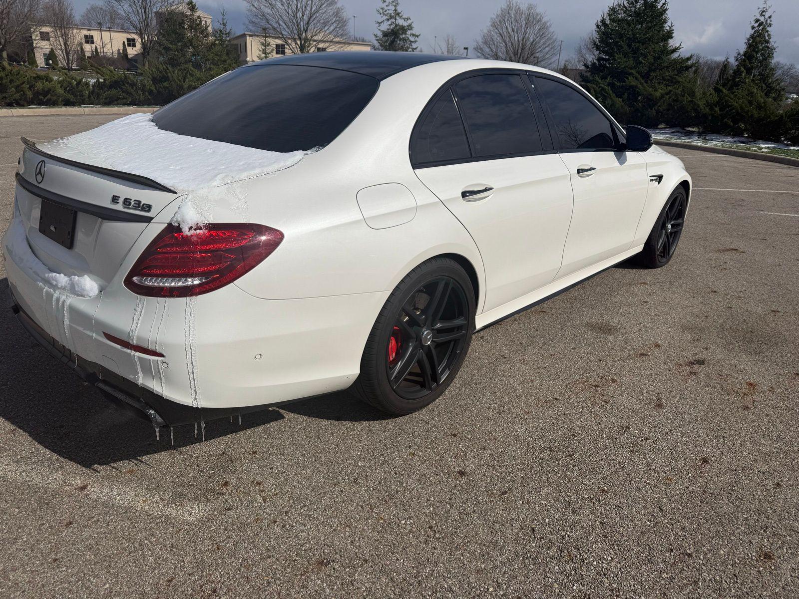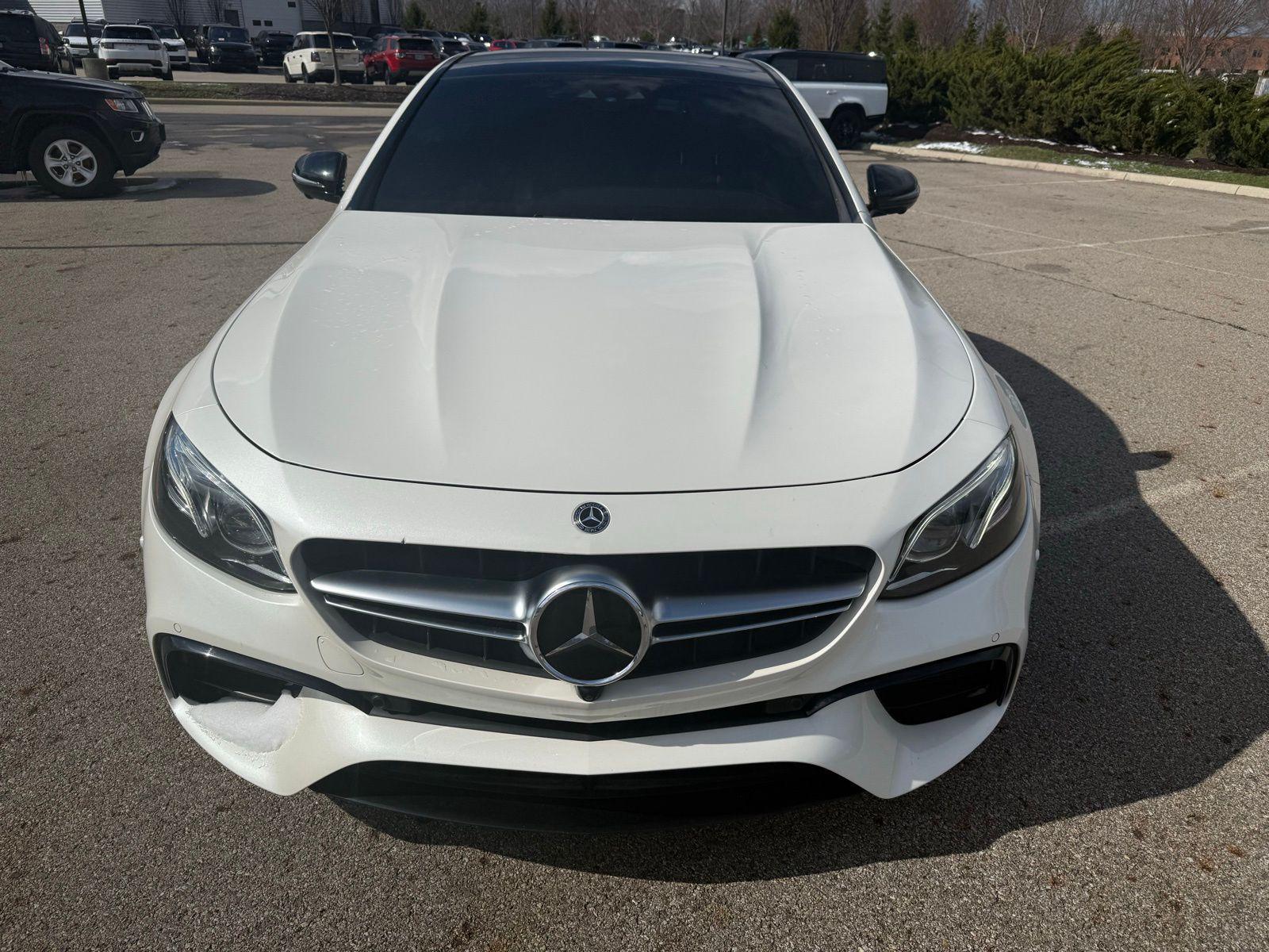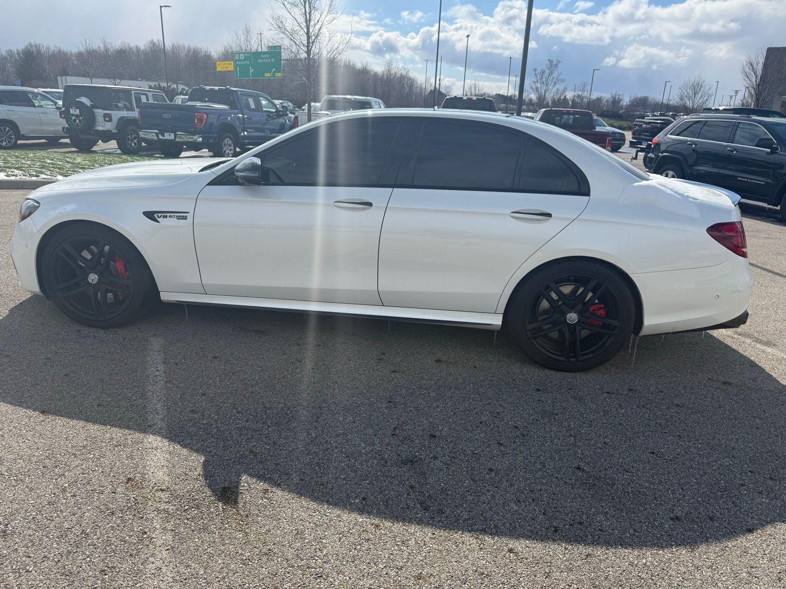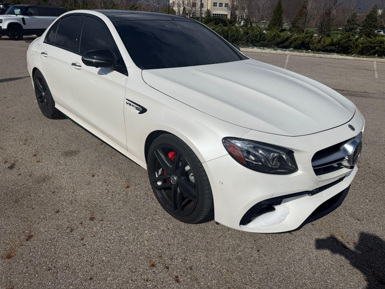 Polar White 2019 Mercedes-Benz E-Class E 63 S AMG® 4MATIC® 4MATIC® 9-Speed Automatic 4.0L V8 4MATIC®, Navigation system: COMAND®.4MATIC®, Navigation system: COMAND®, 13 Speakers, 4-Wheel Disc Brakes, ABS brakes, Adaptive suspension, Air Conditioning, Alloy wheels, AM/FM radio: SiriusXM, AMG® Exclusive Nappa Leather Upholstery, Anti-whiplash front head restraints, Apple CarPlay®/Android Auto®, Auto tilt-away steering wheel, Auto-dimming door mirrors, Auto-dimming Rear-View mirror, Auto-leveling suspension, Automatic temperature control, Brake assist, Bumpers: body-color, Burmester® Surround Sound System, Center Console in Black Piano Lacquer, Delay-off headlights, Driver door bin, Driver vanity mirror, Dual front impact airbags, Dual front side impact airbags, eCall-Emergency System, Electronic Stability Control, Emergency communication system: Mercedes me connect, Four wheel independent suspension, Front anti-roll bar, Front Bucket Seats, Front Center Armrest, Front dual zone A/C, Front reading lights, Fully automatic headlights, Garage door transmitter: Homelink, HD Radio, Head restraints memory, Heated & Ventilated Front Seats, Heated door mirrors, Heated front seats, Illuminated entry, Knee airbag, Leather Shift Knob, Live Traffic, Low tire pressure warning, Memory seat, NFC Wireless Charging, Occupant sensing airbag, Outside temperature display, Overhead airbag, Overhead console, Panic alarm, Passenger door bin, Passenger vanity mirror, Power adjustable front head restraints, Power adjustable rear head restraints, Power door mirrors, Power driver seat, Power Front Seats, Power moonroof, Power passenger seat, Power steering, Power windows, Premium audio system: COMAND®, Radio data system, Radio: COMAND® Navigation, Rain sensing wipers, Rear anti-roll bar, Rear fog lights, Rear reading lights, Rear seat center armrest, Rear window defroster, Remote keyless entry, Security system, SiriusXM Radio, Speed control, Speed-sensing steering, Split folding rear seat, Sport steering wheel, Steering wheel memory, Steering wheel mounted audio controls, Steering Wheel Shift Paddles, Tachometer, Telescoping steering wheel, Tilt steering wheel, Traction control, Trip computer, Turn signal indicator mirrors, Variably intermittent wipers, Ventilated front seats, Weather band radio, and Wheels: 20"" AMG® Twin 5-Spoke w/Grey Accents. Recent Arrival!