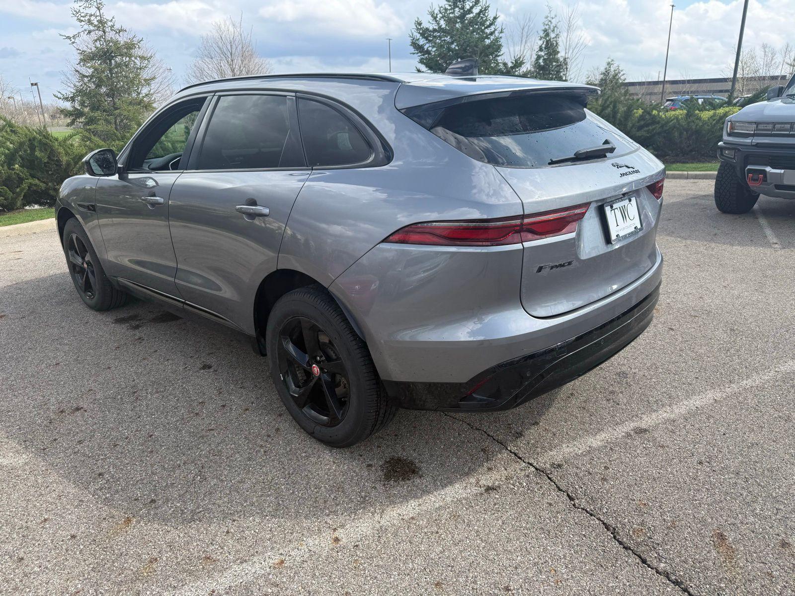 Eiger Gray 2022 Jaguar F-PACE P250 S AWD 8-Speed Automatic 2.0L I4 Turbocharged Navigation system: Pivi Pro (Connected Navigation).Navigation system: Pivi Pro (Connected Navigation), 11 Speakers, 3.73 Axle Ratio, 4-Wheel Disc Brakes, ABS brakes, Adaptive suspension, Air Conditioning, Alloy wheels, AM/FM radio: SiriusXM, Apple CarPlay/Android Auto, Auto High-beam Headlights, Auto-dimming door mirrors, Auto-dimming Rear-View mirror, Automatic temperature control, Brake assist, Bumpers: body-color, Compass, Delay-off headlights, Driver door bin, Driver vanity mirror, Dual front impact airbags, Dual front side impact airbags, Electronic Stability Control, Emergency communication system: Remote SOS Emergency Call, Four wheel independent suspension, Front anti-roll bar, Front Bucket Seats, Front Center Armrest, Front dual zone A/C, Front reading lights, Fully automatic headlights, Garage door transmitter: HomeLink, Genuine wood dashboard insert, Genuine wood door panel insert, Grained Leather Seat Trim, Heated door mirrors, Heated Front Bucket Seats, Heated front seats, Illuminated entry, Leather Shift Knob, Leather steering wheel, Low tire pressure warning, Occupant sensing airbag, Outside temperature display, Overhead airbag, Overhead console, Panic alarm, Passenger door bin, Passenger vanity mirror, Power door mirrors, Power driver seat, Power Liftgate, Power moonroof, Power passenger seat, Power steering, Power windows, Radio data system, Radio: Meridian 380W Sound System, Rain sensing wipers, Rear anti-roll bar, Rear fog lights, Rear reading lights, Rear seat center armrest, Rear window defroster, Rear window wiper, Remote keyless entry, Security system, Speed control, Speed-sensing steering, Split folding rear seat, Spoiler, Steering wheel mounted audio controls, Tachometer, Telescoping steering wheel, Tilt steering wheel, Traction control, Trip computer, Turn signal indicator mirrors, Variably intermittent wipers, and Wheels: 19"" 5 Spoke Gloss Black (Style 5103) Recent Arrival! 22/27 City/Highway MPG