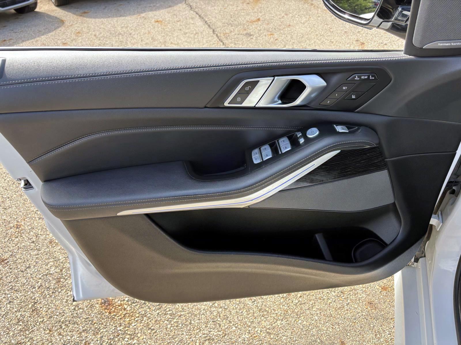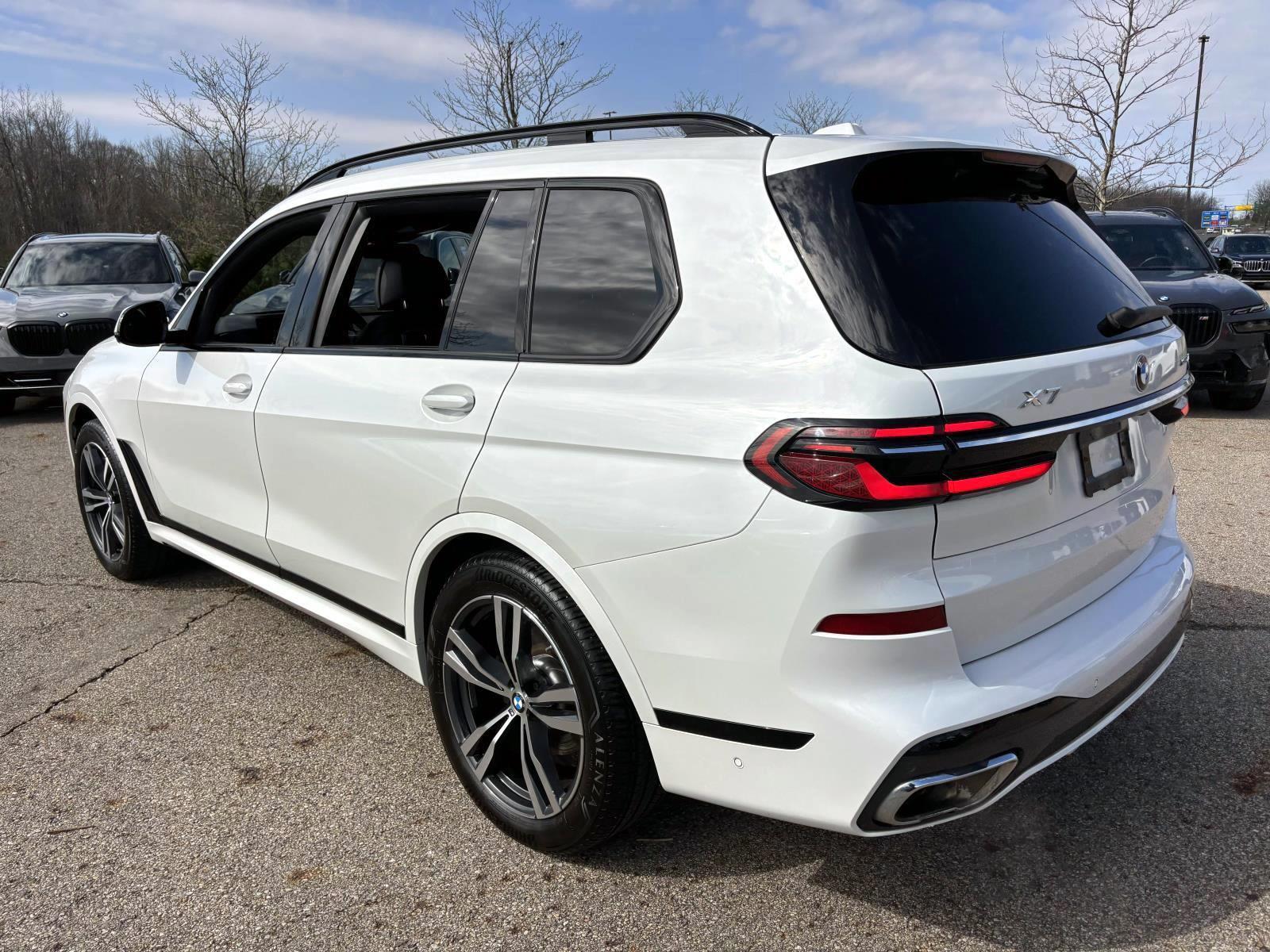New Price! Mineral White Metallic 2023 BMW X7 xDrive40i AWD 8-Speed Automatic Sport 3.0L I6 DOHC 24V 5UX23EM0XP9N58188, 57,300 mi., 5-Zone Automatic Climate Control, Aerodynamic Kit, Anthracite Alcantara Headliner, Climate Comfort Package, Connected Package Pro, Drive Recorder, Front & Rear Heated Seats, Front Ventilated Seats, Gesture Control, harman/kardon Surround Sound System, M Sport Package, M Sport Package (337), M Steering Wheel, Navigation system: BMW Maps Navigation, Parking Assistance Package, Parking Assistant Professional, Premium Package, Rear Electric Side Window Shades, Shadowline Exterior Trim, Soft-Close Automatic Doors, Surround View w/3D View, Wheels: 21"" x 9.5"" Double-Spoke Bi-Color Orbit Grey, Without Lines Designation Outside.Climate Comfort Package (5-Zone Automatic Climate Control, Front & Rear Heated Seats, and Front Ventilated Seats), Connected Package Pro, M Sport Package (Aerodynamic Kit, Anthracite Alcantara Headliner, M Steering Wheel, Shadowline Exterior Trim, Wheels: 21"" x 9.5"" Double-Spoke Bi-Color Orbit Grey, and Without Lines Designation Outside), M Sport Package (337), Parking Assistance Package (Drive Recorder, Parking Assistant Professional, and Surround View w/3D View), Premium Package (Gesture Control, harman/kardon Surround Sound System, Rear Electric Side Window Shades, and Soft-Close Automatic Doors), Navigation system: BMW Maps Navigation, 10 Speakers, 3.64 Axle Ratio, 3rd row seats: split-bench, 4-Wheel Disc Brakes, ABS brakes, Adaptive suspension, Air Conditioning, Alloy wheels, AM/FM radio: SiriusXM, AM/FM Stereo, Apple CarPlay & Android Auto Compatibility, Apple CarPlay Compatibility, Auto High-beam Headlights, Auto tilt-away steering wheel, Auto-dimming door mirrors, Auto-dimming Rear-View mirror, Auto-leveling suspension, Automatic temperature control, BMW Assist eCall, BMW TeleServices, Brake assist, Bumpers: body-color, Compass, ConnectedDrive Services, Delay-off headlights, Driver door bin, Driver vanity mirror, Dual front impact airbags, Dual front side impact airbags, Electronic Stability Control, Emergency communication system: BMW Assist eCall, Exterior Parking Camera Rear, Four wheel independent suspension, Front anti-roll bar, Front Bucket Seats, Front Center Armrest, Front dual zone A/C, Front reading lights, Fully automatic headlights, Garage door transmitter, Genuine wood console insert, Genuine wood dashboard insert, Genuine wood door panel insert, Head restraints memory, Heads-Up Display, Heated door mirrors, Heated front seats, Heated Multi-Contour Seats, Heated steering wheel, Hi-Fi Sound System, Illuminated entry, Knee airbag, Live Cockpit Pro w/Navi, Low tire pressure warning, Memory seat, Occupant sensing airbag, Outside temperature display, Overhead airbag, Panic alarm, Passenger door bin, Passenger vanity mirror, Personal eSIM 5G, Power adjustable front head restraints, Power door mirrors, Power driver seat, Power Front Seats, Power moonroof: Panorama, Power passenger seat, Power steering, Power windows, Radio data system, Rain sensing wipers, Rear air conditioning, Rear anti-roll bar, Rear dual zone A/C, Rear reading lights, Rear seat center armrest, Rear window defroster, Rear window wiper, Reclining 3rd row seat, Remote keyless entry, Security system, Sensafin Upholstery, SiriusXM Satellite Radio, Speed control, Speed-sensing steering, Speed-Sensitive Wipers, Split folding rear seat, Spoiler, Sport steering wheel, Steering wheel memory, Steering wheel mounted audio controls, Tachometer, Telescoping steering wheel, Tilt steering wheel, Traction control, Trip computer, Turn signal indicator mirrors, Variably intermittent wipers, Wheels: 21"" x 9.5"" Y-Spoke Bi-Color, and Wireless Charging Device.