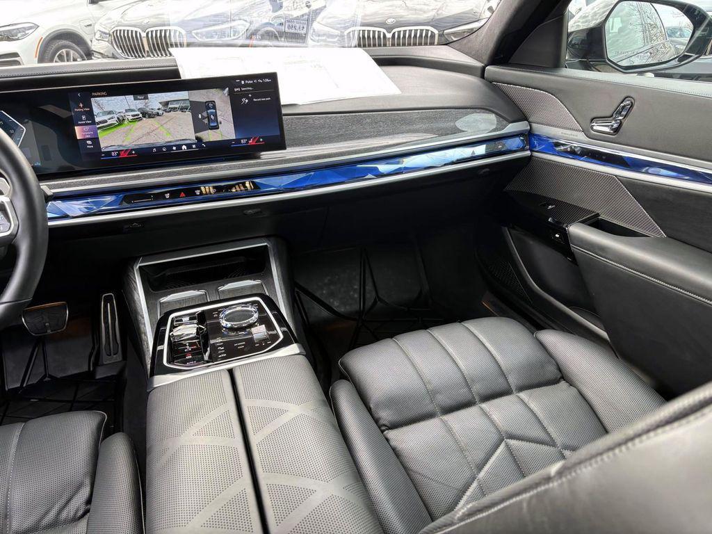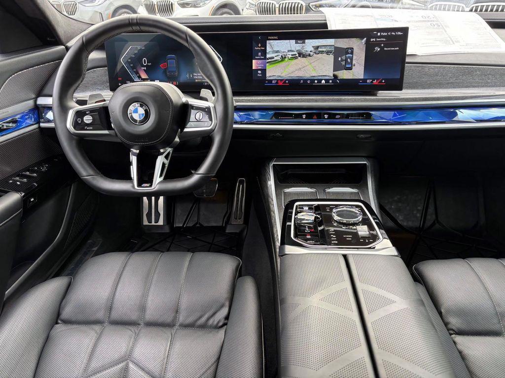 Certified. Black Sapphire Metallic 2024 BMW 7 Series 760i xDrive AWD 8-Speed Automatic Sport 4.4L V8 32V Twin Turbocharged UC10077, WBA33EJ07RCS46004, 17,344 mi., CPO warranty until 06/06/2029 or unlimited miles, Original MSRP $136,975, AWD, Black w/Extended Merino Leather Upholstery, ACC Stop & Go + Active Driving Assistant, Active Comfort Drive w/Road Preview, Active Driving Assistant Pro, Active Roll Stabilization, Autobahn Package, Automatic Doors, Connected Package Pro, Crystal Headlights, Driving Assistance Professional Package, Executive Package, Extended Shadowline Trim, Front Massaging Seats, Highway Assistant, Illuminated Kidney Grille, M Sport Brakes w/Black Calipers, M Sport Package Pro, M Sport Pro Contents, M Sport Professional Package, Navigation system: BMW Maps Navigation, Parking Assistant Delete, Parking Assistant Professional, Premium Package 2, Rear Spoiler, Surround View w/3D View.Autobahn Package (Active Comfort Drive w/Road Preview and Active Roll Stabilization), Connected Package Pro, Driving Assistance Professional Package (Active Driving Assistant Pro and Highway Assistant), Executive Package (Automatic Doors, Crystal Headlights, and Front Massaging Seats), M Sport Package Pro, M Sport Professional Package (Extended Shadowline Trim, M Sport Brakes w/Black Calipers, M Sport Pro Contents, and Rear Spoiler), Premium Package 2 (ACC Stop & Go + Active Driving Assistant, Illuminated Kidney Grille, Parking Assistant Delete, Parking Assistant Professional, and Surround View w/3D View), AWD, Black w/Extended Merino Leather Upholstery, Navigation system: BMW Maps Navigation, 18 Speakers, 4-Wheel Disc Brakes, ABS brakes, Adaptive suspension, Air Conditioning, Alloy wheels, AM/FM radio: SiriusXM with 360L, Anthracite Alcantara Headliner, Anti-whiplash front head restraints, Apple CarPlay & Android Auto Compatibility, Auto High-beam Headlights, Auto tilt-away steering wheel, Auto-dimming door mirrors, Auto-dimming Rear-View mirror, Auto-leveling suspension, Automatic temperature control, BMW Curved Display w/HUD, Bowers & Wilkins Surround Sound, Brake assist, Bumpers: body-color, Climate Comfort Laminated Glass, ConnectedDrive Services, Delay-off headlights, Driver door bin, Driver vanity mirror, Dual front impact airbags, Dual front side impact airbags, Electronic Stability Control, Emergency communication system: BMW Assist eCall, Enhanced USB & Bluetooth, Extended Merino Leather Upholstery, Exterior Parking Camera Rear, Four wheel independent suspension, Front anti-roll bar, Front Bucket Seats, Front Center Armrest, Front dual zone A/C, Front reading lights, Front Ventilated Seats, Fully automatic headlights, Garage door transmitter, Genuine wood dashboard insert, Head restraints memory, Heads-Up Display, Heated door mirrors, Heated front seats, Heated rear seats, Heated steering wheel, Illuminated entry, Leather steering wheel, Low tire pressure warning, Memory seat, Mirror Oak High Gloss Trim, Multi-Functional Seats, Natural Interaction, Occupant sensing airbag, Outside temperature display, Overhead airbag, Overhead console, Panic alarm, Passenger door bin, Passenger vanity mirror, Personal eSIM 5G, Power adjustable front head restraints, Power door mirrors, Power driver seat, Power passenger seat, Power steering, Power windows, Radio data system, Radio: Audio System, Rain sensing wipers, Rear air conditioning, Rear anti-roll bar, Rear audio controls, Rear dual zone A/C, Rear reading lights, Rear seat center armrest, Rear Window Blind, Rear window defroster, Remote keyless entry, Security system, SiriusXM w/360L & 1 Year Platinum Plan Subscription, Speed control, Speed-sensing steering, Speed-Sensitive Wipers, Sport steering wheel, Steering wheel memory, Steering wheel mounted audio controls, Tachometer, Telescoping steering wheel, Tilt steering wheel, Traction control, Trip computer, Variably intermittent wipers, Ventilated front seats, Weather band radio, and Wheels: 20"" M Aerodynamic Bi-Color Style 9