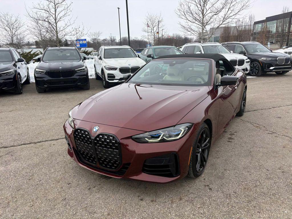 Certified. Aventurin Red Metallic 2024 BMW 4 Series M440i xDrive AWD 8-Speed Automatic Sport 3.0L I6 WBA63AT0XRCP54325, 27,828 mi., CPO warranty until 10/27/2029 or unlimited miles, Active Park Distance Control, Black Mirror Caps, BMW Curved Display w/HUD, Connected Package Pro, Extended Shadowline Trim, Heated Front Seats, Heated Steering Wheel, M Shadowline Lights, M Sport Brakes w/Red Calipers, M Sport Package Pro, Navigation, Navigation System, Parking Assistance Package, Parking Assistant Plus, Premium Package, Rear-View Camera, Shadowline Package, Surround View w/3D View.Connected Package Pro, M Sport Package Pro, Parking Assistance Package (Active Park Distance Control, Parking Assistant Plus, Rear-View Camera, and Surround View w/3D View), Premium Package (BMW Curved Display w/HUD, Heated Front Seats, and Heated Steering Wheel), Shadowline Package (Black Mirror Caps, Extended Shadowline Trim, M Shadowline Lights, and M Sport Brakes w/Red Calipers), Navigation, Navigation System, 10 Speakers, 4-Wheel Disc Brakes, ABS brakes, Air Conditioning, Alloy wheels, Aluminum Trim w/Mesh Effect, AM/FM Radio, AM/FM radio: SiriusXM with 360L, Apple CarPlay & Android Auto Compatibility, Auto High-beam Headlights, Auto-dimming door mirrors, Auto-dimming Rear-View mirror, Automatic temperature control, BMW Assist eCall, BMW TeleServices, Brake assist, Bumpers: body-color, Compass, ConnectedDrive Services, Convertible roof lining, Convertible roof wind blocker, Delay-off headlights, Driver door bin, Driver vanity mirror, Dual front impact airbags, Dual front side impact airbags, Electronic Stability Control, Emergency communication system: BMW Assist eCall, Exterior Parking Camera Rear, Four wheel independent suspension, Front anti-roll bar, Front Bucket Seats, Front Center Armrest, Front dual zone A/C, Front reading lights, Fully automatic headlights, Garage door transmitter, Glass rear window, harman/kardon Surround Sound System, Heated door mirrors, Hi-Fi Sound System, Icon Adaptive LED Headlights w/Laserlight, Illuminated entry, Integrated roll-over protection, Knee airbag, Leather steering wheel, Low tire pressure warning, Lumbar Support, Memory seat, Neck Warmer, Occupant sensing airbag, Outside temperature display, Overhead console, Panic alarm, Passenger door bin, Passenger vanity mirror, Perforated SensaTec Upholstery, Power convertible roof, Power door mirrors, Power driver seat, Power Front Seats, Power passenger seat, Power steering, Power windows, Radio data system, Rain sensing wipers, Rear anti-roll bar, Rear reading lights, Rear seat center armrest, Rear window defroster, Remote Engine Start, Remote keyless entry, Security system, SiriusXM w/360L, Speed control, Speed-sensing steering, Speed-Sensitive Wipers, Sport Seats, Sport steering wheel, Steering wheel mounted audio controls, Tachometer, Telescoping steering wheel, Tilt steering wheel, Traction control, Trip computer, Turn signal indicator mirrors, Variably intermittent wipers, Wheels: 18"" x 7.5"" M Double-Spoke Bi-Color, Wheels: 19"" x 8"" M Double-Spoke Jet Black, Widescreen Display, and Wireless Device Charging. Recent Arrival! 22/31 City/Highway MPGBMW Certified Pre-Owned Details: * Vehicle History * 1 year/Unlimited miles beginning after new car warranty expires. 6-yrs Roadside Assistance. SiriusXM Satellite Radio 3-mos free. Every BMW Certified Plug-in Hybrid comes with an 8-Year/100,000-Mile Battery Guarantee. The Initial Battery Transfers to the New Owner. * Warranty Deductible: $0 * Multipoint Point Inspection * Roadside Assistance * Transferable Warranty * Limited Warranty: 12 Month/Unlimited Mile