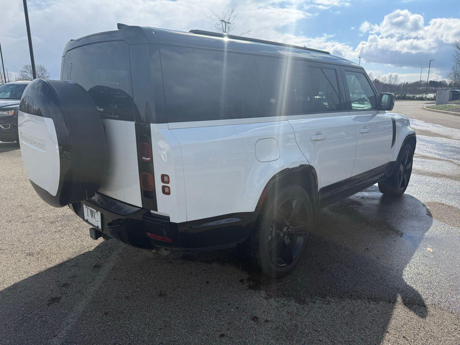 Certified. Fuji White 2024 Land Rover Defender 130 X-Dynamic SE 4WD 8-Speed Automatic 3.0L I6 Navigation system: Connected Navigation PIVI Pro.Navigation system: Connected Navigation PIVI Pro, 11 Speakers, 12-Way Heated & Cooled Electric Memory Front Seats, 3.55 Axle Ratio, 3rd row seats: split-bench, 4-Wheel Disc Brakes, ABS brakes, Adaptive suspension, Air Conditioning, Alloy wheels, AM/FM radio: SiriusXM, Apple CarPlay & Android Auto, Auto High-beam Headlights, Auto tilt-away steering wheel, Auto-dimming door mirrors, Auto-dimming Rear-View mirror, Automatic temperature control, Brake assist, Bumpers: body-color, Compass, Delay-off headlights, Driver door bin, Driver vanity mirror, Dual front impact airbags, Dual front side impact airbags, Electronic Stability Control, Exterior Parking Camera Rear, Four wheel independent suspension, Front anti-roll bar, Front Bucket Seats, Front Center Armrest, Front dual zone A/C, Front fog lights, Front reading lights, Fully automatic headlights, Garage door transmitter: HomeLink, Grained Leather & Robustec Seat Trim, Heated door mirrors, Heated front seats, Heated steering wheel, Illuminated entry, Leather Shift Knob, Leather steering wheel, Low tire pressure warning, Memory seat, Occupant sensing airbag, Outside temperature display, Overhead airbag, Overhead console, Panic alarm, Passenger door bin, Passenger vanity mirror, Power door mirrors, Power driver seat, Power moonroof, Power passenger seat, Power steering, Power windows, Radio data system, Radio: 400W 11 Speaker Meridian Sound System, Rain sensing wipers, Rear anti-roll bar, Rear fog lights, Rear reading lights, Rear seat center armrest, Rear window defroster, Rear window wiper, Remote keyless entry, Security system, Speed control, Speed-sensing steering, Speed-Sensitive Wipers, Split folding rear seat, Steering wheel memory, Steering wheel mounted audio controls, Tachometer, Telescoping steering wheel, Tilt steering wheel, Traction control, Trip computer, Variably intermittent wipers, Ventilated front seats, Weather band radio, and Wheels: 20"" Satin Dark Grey Style 5094. Recent Arrival!Land Rover Approved Certified Pre-Owned Details: * Vehicle History * Transferable Warranty * Warranty Deductible: $0 * 165 Point Inspection * Roadside Assistance * Up to 1-year/Unlimited Miles or 2-year/100,000 Miles (whichever occurs first) Vehicle must have minimum one year of coverage at point of sale