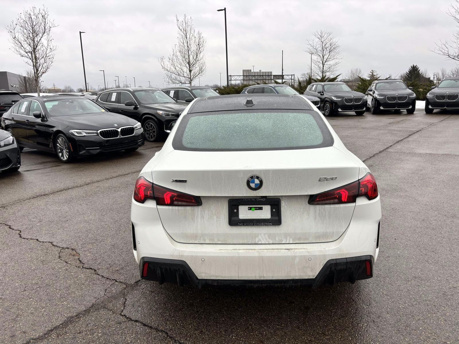 New Price! Certified. Alpine White 2026 BMW 2 Series 228 Gran Coupe AWD 7-Speed Automatic 2.0L I4 DOHC WBA23GG05T7T98961, 4,463 mi., CPO warranty until 09/09/2030 or unlimited miles, Black Roof and Mirror Caps, Illuminated Kidney Grille, Live Cockpit Pro, M Sport Package, Navigation, Navigation System, Panoramic Moonroof, Parking Assistant Plus, Parking View with 3D View (Surround View), Premium Content 1, Premium Package, Remote Engine Start, Technology Package.M Sport Package, Premium Package (Black Roof and Mirror Caps, Panoramic Moonroof, and Remote Engine Start), Technology Package (Illuminated Kidney Grille, Live Cockpit Pro, Parking Assistant Plus, Parking View with 3D View (Surround View), Premium Content 1, and Head-Up Display), BMW Certified Pre-Owned Certified, Navigation, Navigation System, 12 Speakers, 4-Wheel Disc Brakes, ABS brakes, Adaptive suspension, Air Conditioning, Alloy wheels, AM/FM radio: SiriusXM with 360L, Apple CarPlay and Android Auto Compatibility, Apple CarPlay Compatibility, Auto High-beam Headlights, Auto-dimming door mirrors, Auto-dimming Rear-View mirror, Automatic temperature control, BMW Assist ECall, BMW TeleServices, Brake assist, Bumpers: body-color, Compass, Delay-off headlights, Driver door bin, Driver vanity mirror, Dual front impact airbags, Dual front side impact airbags, Electronic Stability Control, Emergency communication system: BMW Assist eCall, Extended Shadowline Trim, Exterior Parking Camera Rear, Four wheel independent suspension, Front anti-roll bar, Front Bucket Seats, Front Center Armrest, Front dual zone A/C, Front reading lights, Fully automatic headlights, Harman/Kardon Premium Sound System, harman/kardon® Speakers, Heated door mirrors, Heated Front Seats, Heated front seats, Heated Steering Wheel, Illuminated entry, Leather steering wheel, Low tire pressure warning, M Sport Brake with Blue Calipers, M Sport Content, M Sport Interior Elements, M Steering Wheel, Memory seat, Occupant sensing airbag, Outside temperature display, Overhead airbag, Panic alarm, Passenger door bin, Passenger vanity mirror, Perforated Veganza Upholstery, Personal ESIM 5G, Power door mirrors, Power driver seat, Power Front Seats, Power passenger seat, Power steering, Power windows, Radio data system, Radio: AM/FM Audio System, Rain sensing wipers, Rear anti-roll bar, Rear reading lights, Rear seat center armrest, Rear window defroster, Remote keyless entry, Security system, SiriusXM with 360L and 1 Year Trial Subscription, Speed control, Speed-sensing steering, Speed-Sensitive Wipers, Split folding rear seat, Sport Seats, Steering wheel mounted audio controls, Tachometer, Telescoping steering wheel, Tilt steering wheel, Traction control, Trip computer, Turn signal indicator mirrors, Universal Garage-Door Opener, Variably intermittent wipers, Widescreen Display, and Wireless Device Charging. 26/38 City/Highway MPG